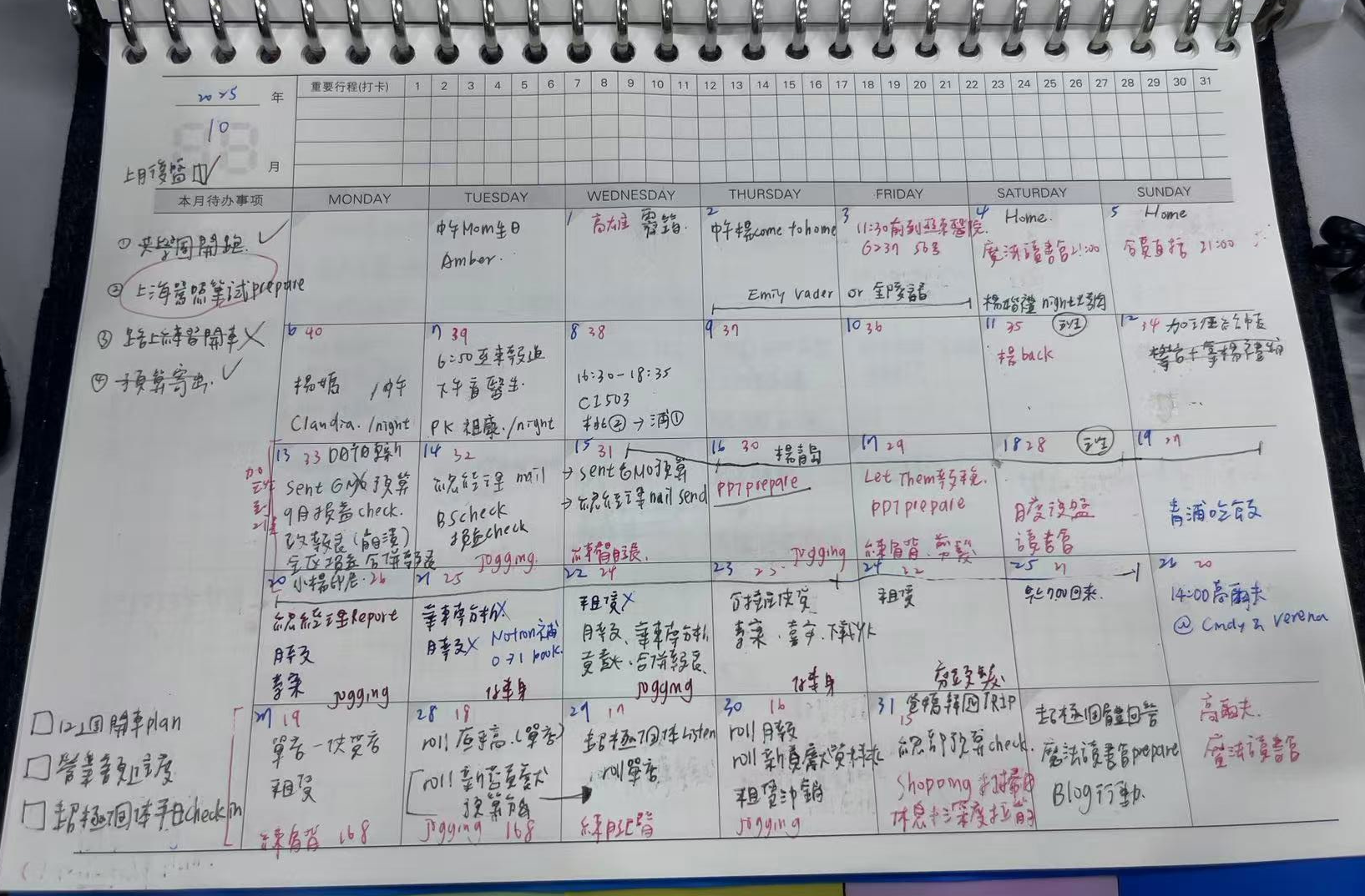這幾年,我不知不覺變成了一個計劃控。不論是在 Notion 建立的年度、季度計劃系統,還是回歸紙本記錄的月度計劃表,直到現在,我甚至開始把魔爪伸向每天的每小時——隨身攜帶一日行程表,徹底掌控時間。